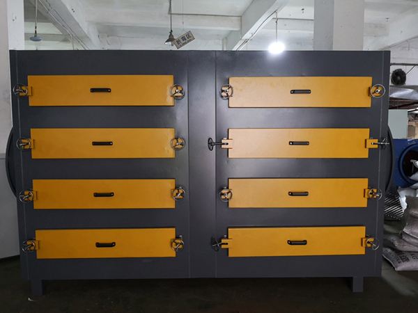 3、對(duì)于大風(fēng)量、低濃度的有機(jī)廢氣處理,活性炭一般采用較大的排列面積和較低的床層厚度,以獲得較大的氣體流通截面、較小的風(fēng)阻和合適的吸附容量。